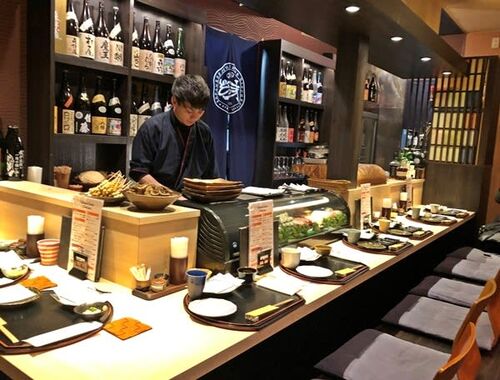 先週の金曜日、八幡西区大浦にある「串揚酒場 ぞろ芽」で、夫婦二人の忘年会を…………(^^♪ ショーケースを囲むL字型のカウンターに案内されました。 掘りごたつ式のテーブル席やソファ席、カウンターを合わせて32席あるそうですが、歳末の金曜日ということで、…