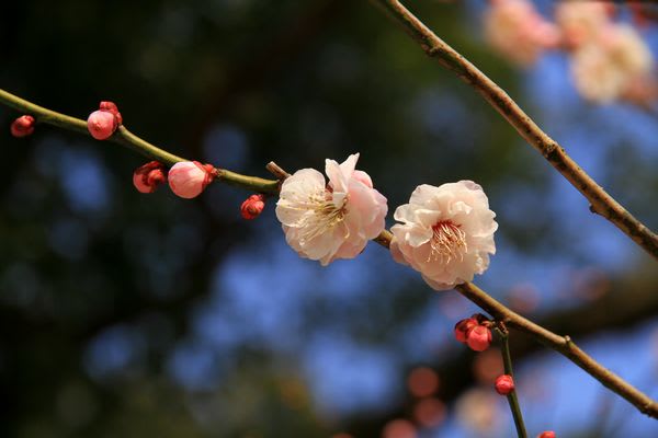 太鼓橋を戻っているときに、一輪一輪の花が大きくて、真っ白な八重の梅の花が目に留まりました。
