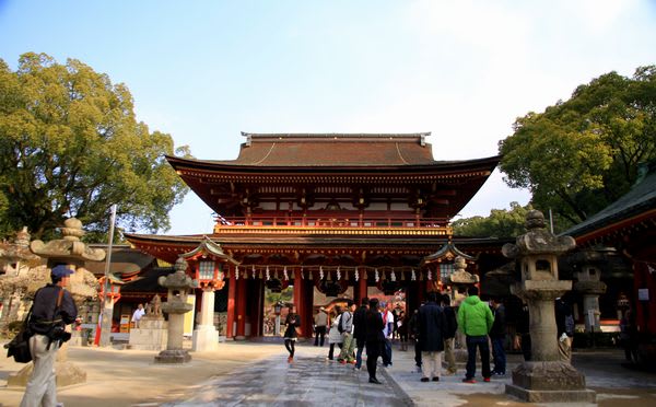 楼門をくぐると正面に本殿。まだ10時前だというのに、そこそこの人出でした。