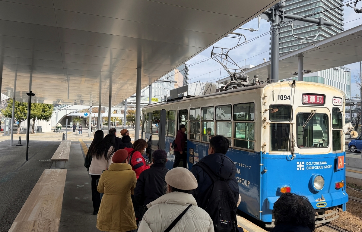 西南戦争の激戦地、田原坂から二俣台地一帯の研修を終えて同期会は終了。行きと同じく、路面電車で熊本駅に向かいます。