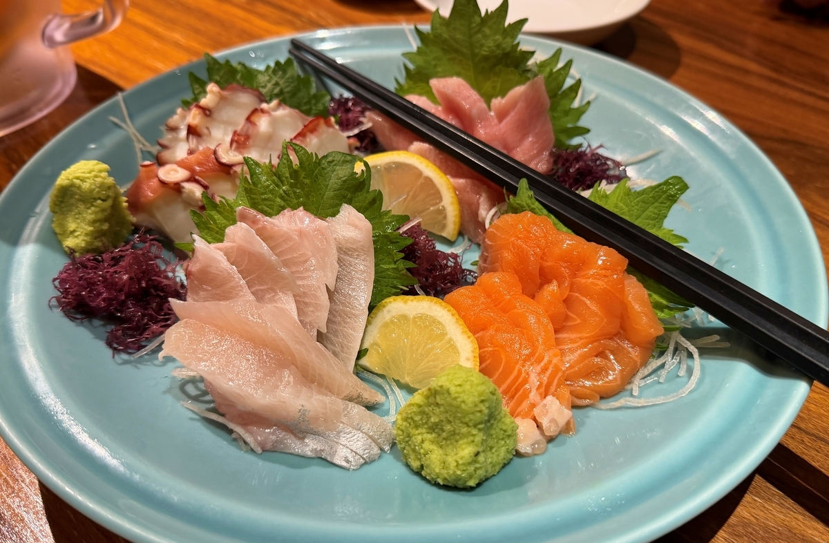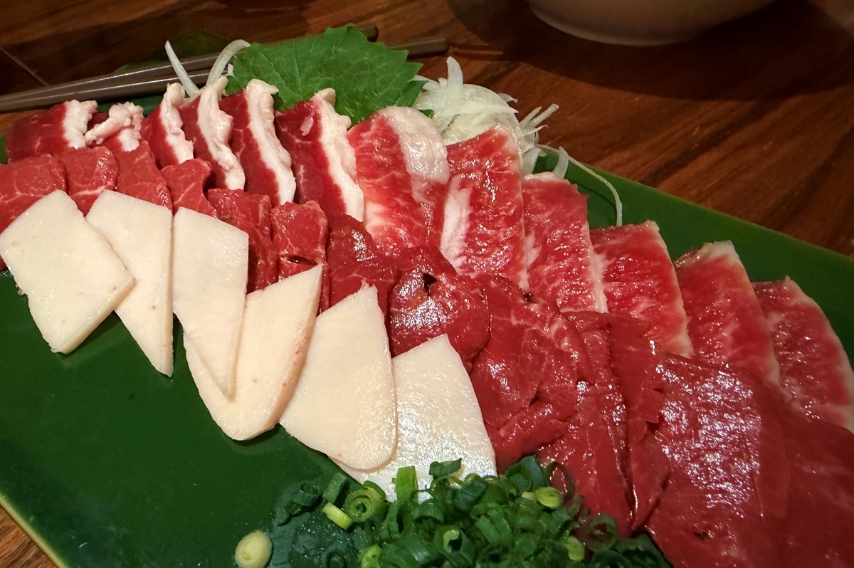 ほんのり甘かった馬刺しの3種盛り。熊本と言えば馬刺し。外せませんね。